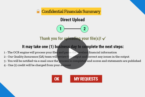 From user or their designated customer invitee upload of financial statements to actionable insights in 1 business day.